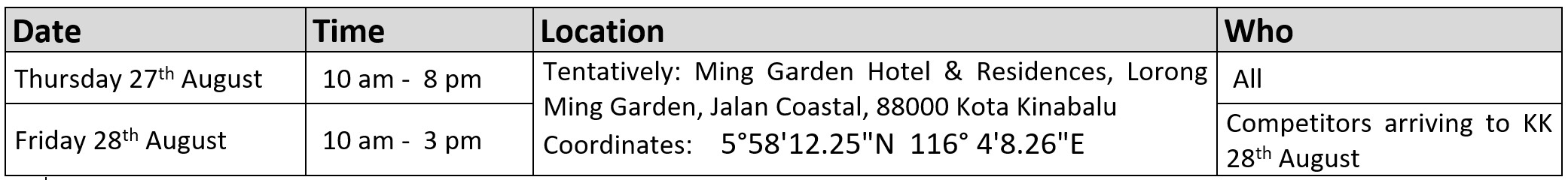 - 27-28 August: Race Pack collection Kota Kinabalu